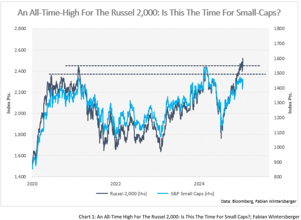 As for my financial market outlook, my view on equities remains essentially unchanged. As long as the bullish trend holds, the bull market should persist. With more Fed cuts on the horizon, small-caps could outperform, as they benefit most from falling short-term interest rates. The Russell 2,000 also hit an all-time high this week, a potential sign that small-caps have room to run.