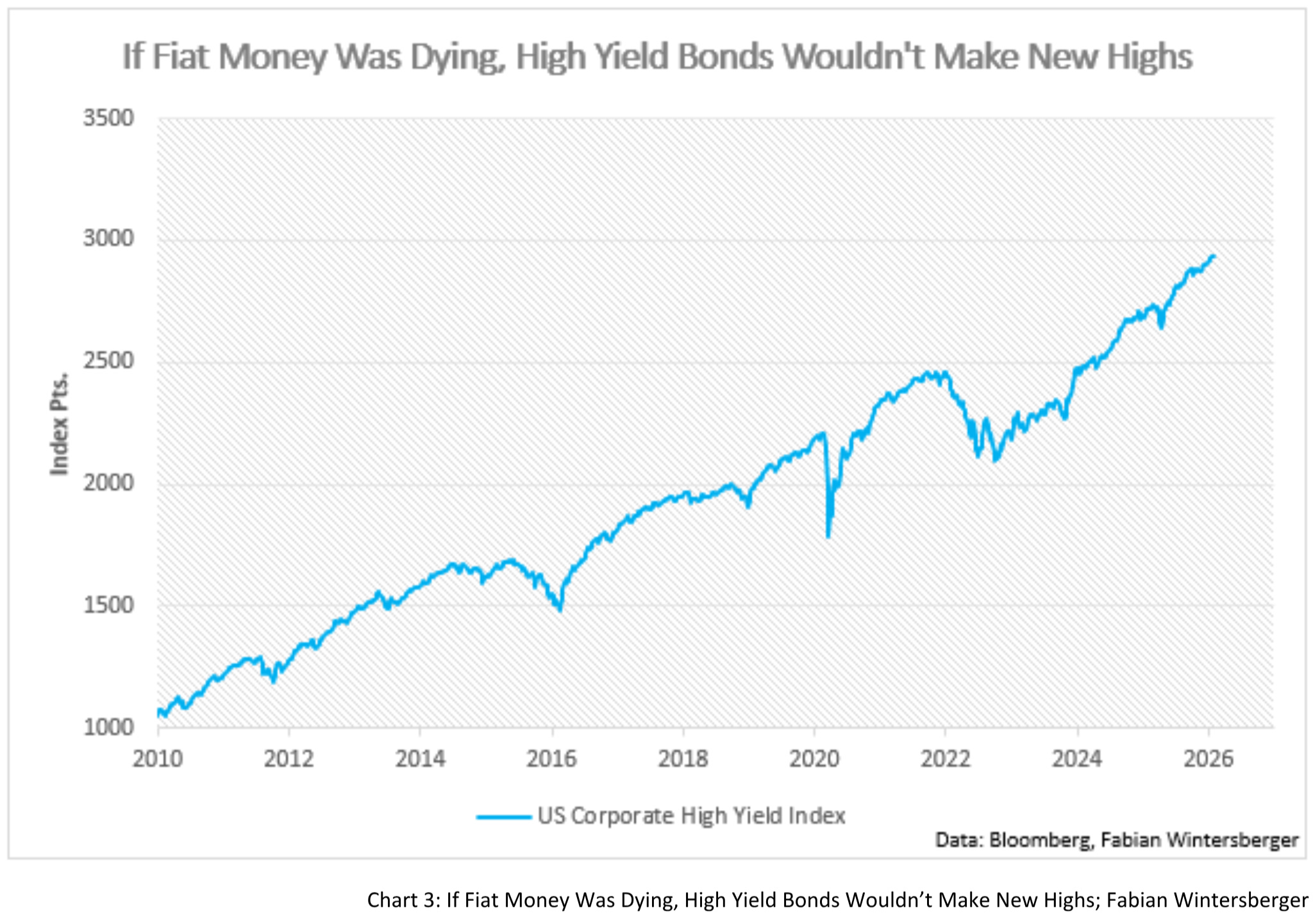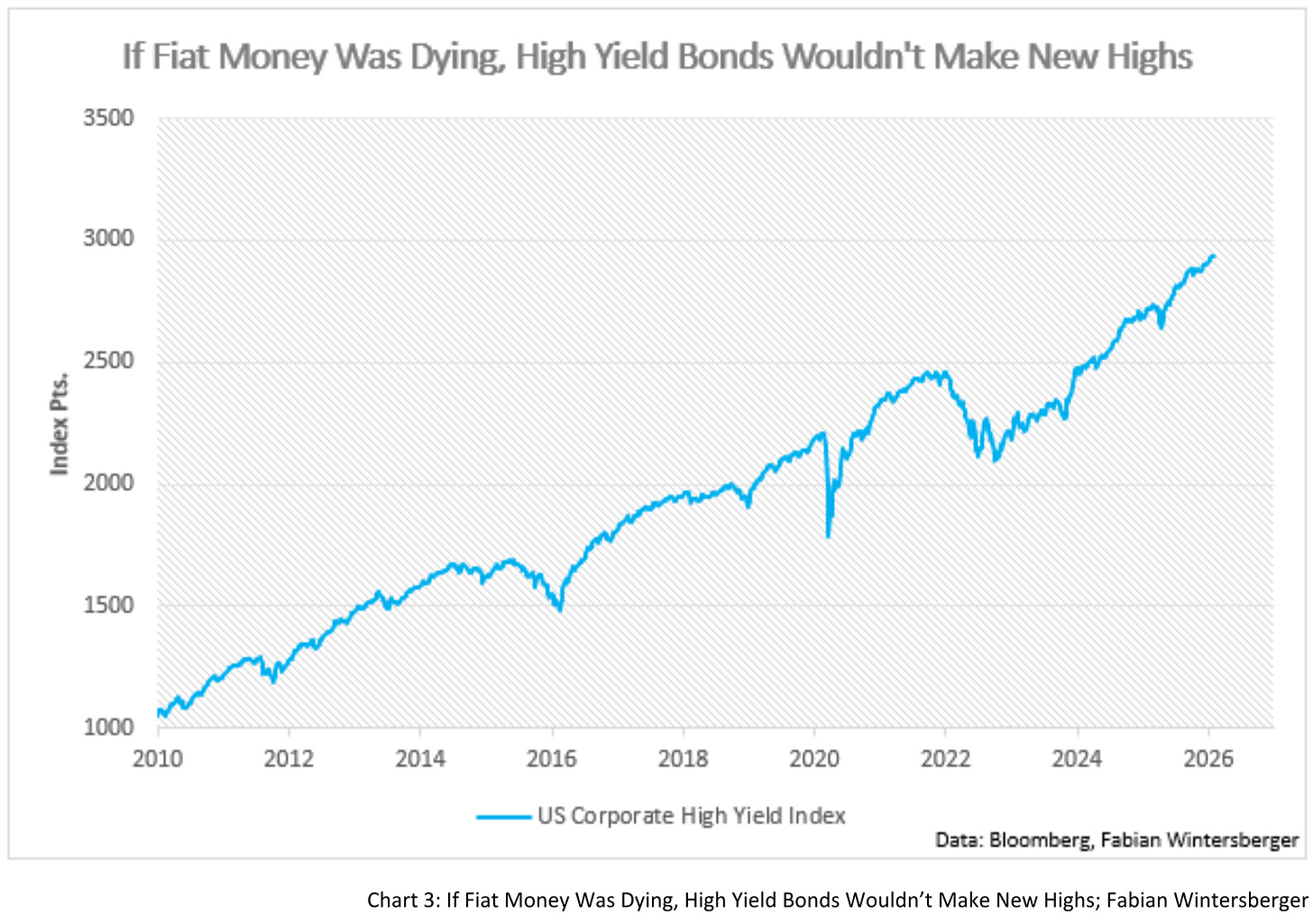 The claim that the rally signals the death of fiat collapses even faster. A glance at investment-grade bond prices immediately contradicts it. If confidence in currency were breaking down, capital would be fleeing fixed income in favor of equities, commodities, or tangible assets. Instead, demand for high yield bonds is rising, pushing prices higher. That is not a rejection of fiat — it is renewed demand for it. Precious metals may be rallying, but the bond market makes clear that this is about risk aversion, not currency debasement.